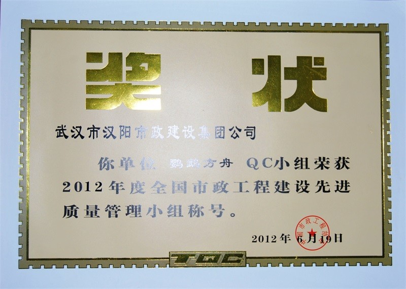 2012年度全國(guó)市政工程建設(shè)先進(jìn)質(zhì)量管理小組