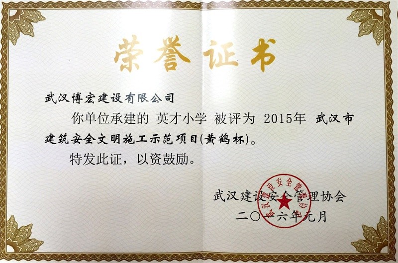 英才小學(xué)-綜合教學(xué)樓及食堂結(jié)構(gòu)優(yōu)質(zhì)工程證書