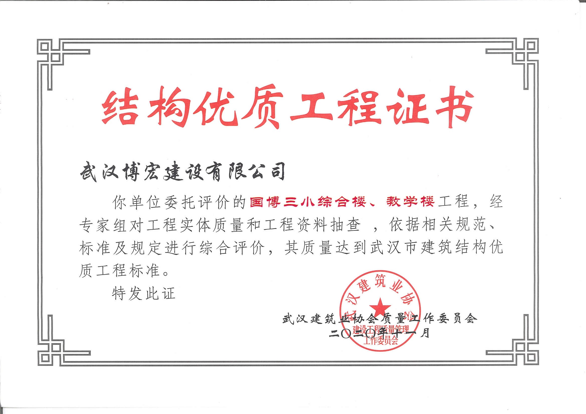 國博三小綜合樓、教學樓武漢市建筑結構優(yōu)質(zhì)工程