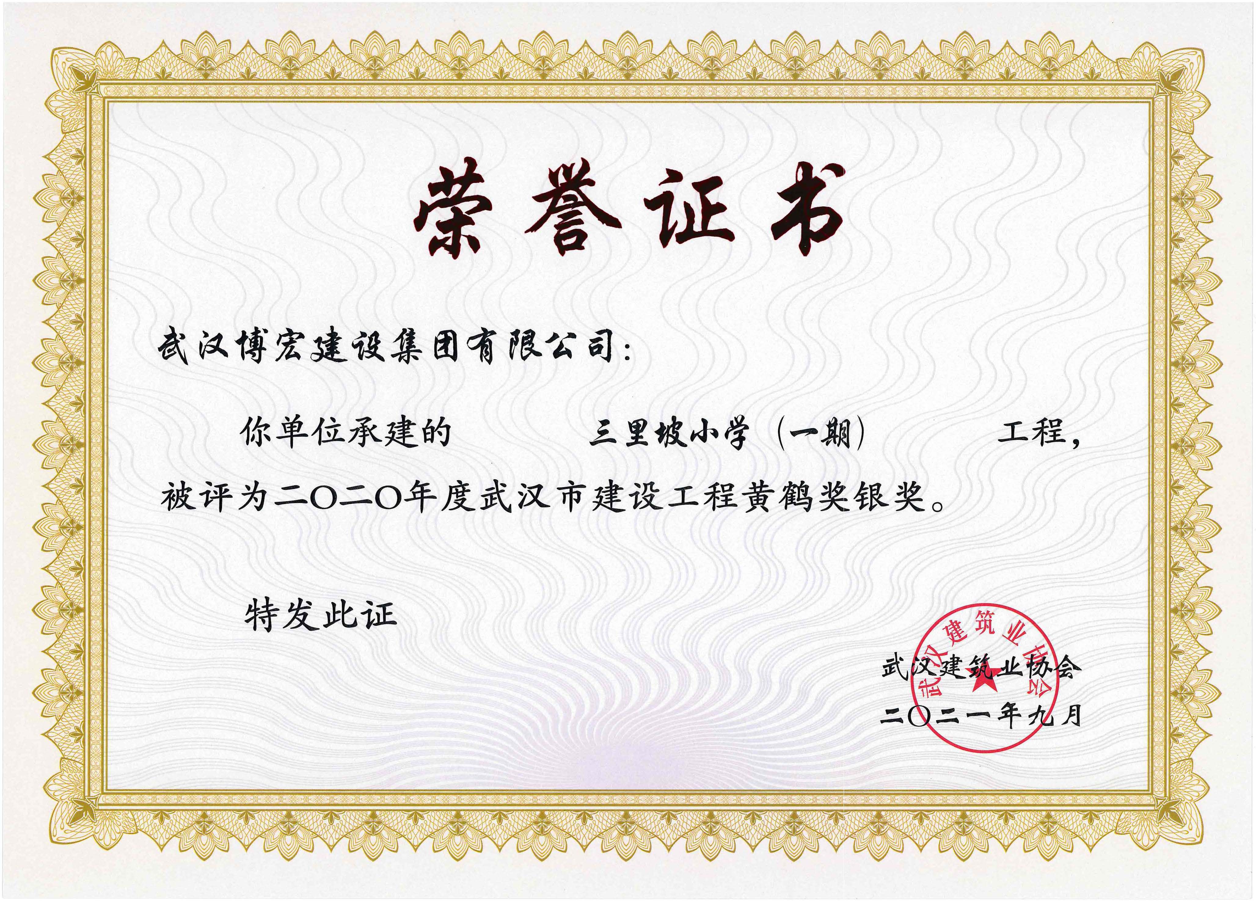 2020年度武漢市建設工程黃鶴獎銀獎-三里坡小學(一期)