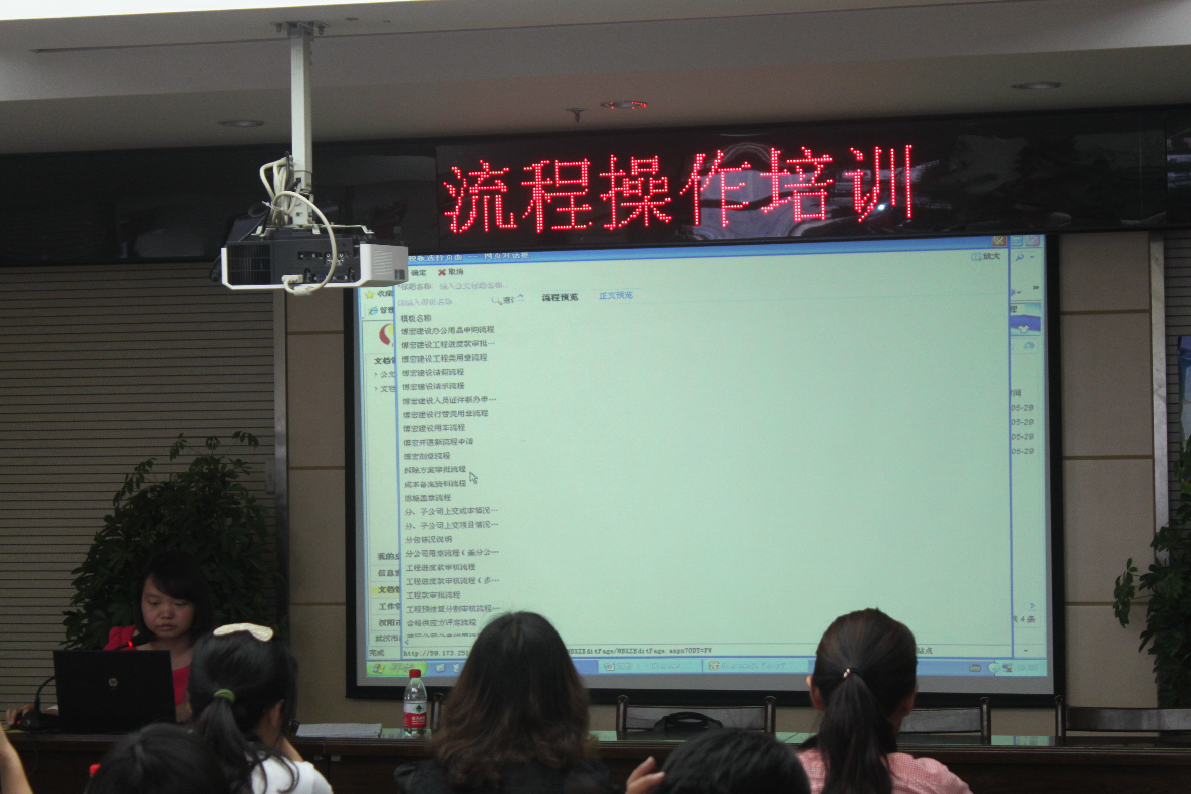 根據(jù)博宏建設(shè)信息化工作總體部署,我公司將于5月底前完成集團(tuán)公司OA系統(tǒng)替代博宏建設(shè)OA系統(tǒng)功能的工作。5月29日下午,群團(tuán)辦公室組織各部門、項(xiàng)目部相關(guān)人員,學(xué)習(xí)了集團(tuán)公司OA系統(tǒng)中辦公室相關(guān)流程的使用。