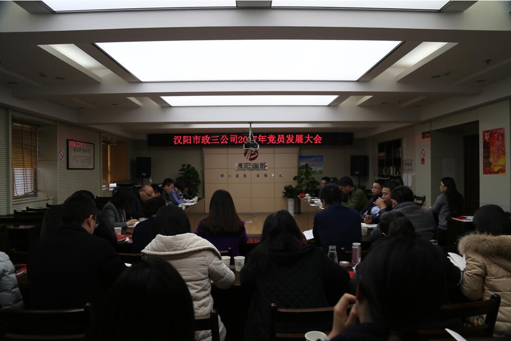 2017年12月23日,漢陽市政三公司支部全體黨員在公司大會議室召開黨員發(fā)展及轉(zhuǎn)正大會,大會同意郭文婷、劉海軍、閔慧子三名同志轉(zhuǎn)為中共正式黨員,接收向濤、紀成成兩名同志為中共預備黨員。大會由支部副書記郭一清主持。