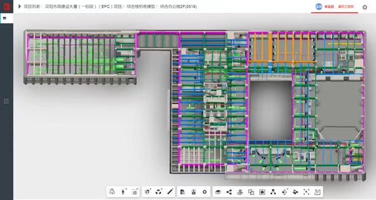 研究生期間彭迎研究的方向是BIM技術(shù)土建方向,但工作需要盡快上手的是BIM技術(shù)機(jī)電方向,一時讓她有點手足無措,“有問題先嘗試解決,辦法總比困難多”踏實肯干的她選擇了迎難而上,白天她跟著師傅們不厭其煩地穿梭于現(xiàn)場的各個樓棟,在工作過程中多看、多問、多記、多學(xué),晚上回到宿舍,她通過閱讀大量BIM機(jī)電方向相關(guān)書籍以及上網(wǎng)課等方式自學(xué)相關(guān)知識,有時為了弄懂一個問題常常奮戰(zhàn)到深夜。從入門到逐漸架構(gòu)起整個知識體系,彭迎經(jīng)歷了半年的時間。在自學(xué)期間,她遇到了很多困難和瓶頸,但因為熱愛,從未想過放棄。“那段時間很累但是也很充實,每天都能學(xué)習(xí)到新的東西,讓我對機(jī)電的了解越來越深入,也越發(fā)體會到了BIM的魅力??粗约豪L制的BIM圖紙粘貼在了施工墻上,工人按照圖紙可以搭建出符合標(biāo)準(zhǔn)的砌體,心中的喜悅是無法用語言描述的。”回憶起那段時光時,她臉上總是帶著微笑。理論上的認(rèn)真鉆研,現(xiàn)場中的建模實踐,彭迎的專業(yè)技術(shù)在不懈努力中愈見純熟,在負(fù)責(zé)總部大樓地上部分機(jī)電BIM工作過程中考取了BIM二級設(shè)備證,也和同事們一起獲得了多項國家級、省市級BIM獎項,熱愛與進(jìn)取讓她一次次品嘗到了成功的碩果。