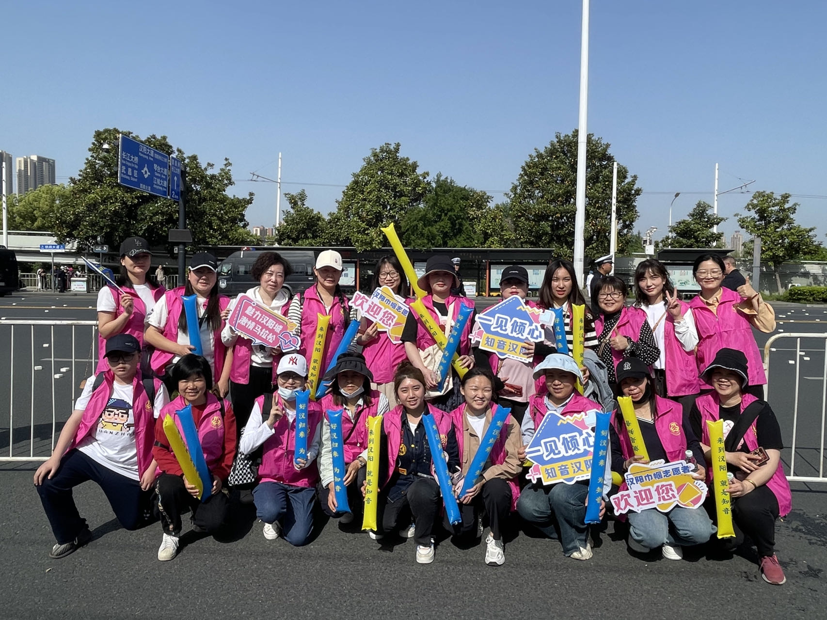 彭迎(第二排右一)參加武漢馬拉松志愿服務(wù)活動