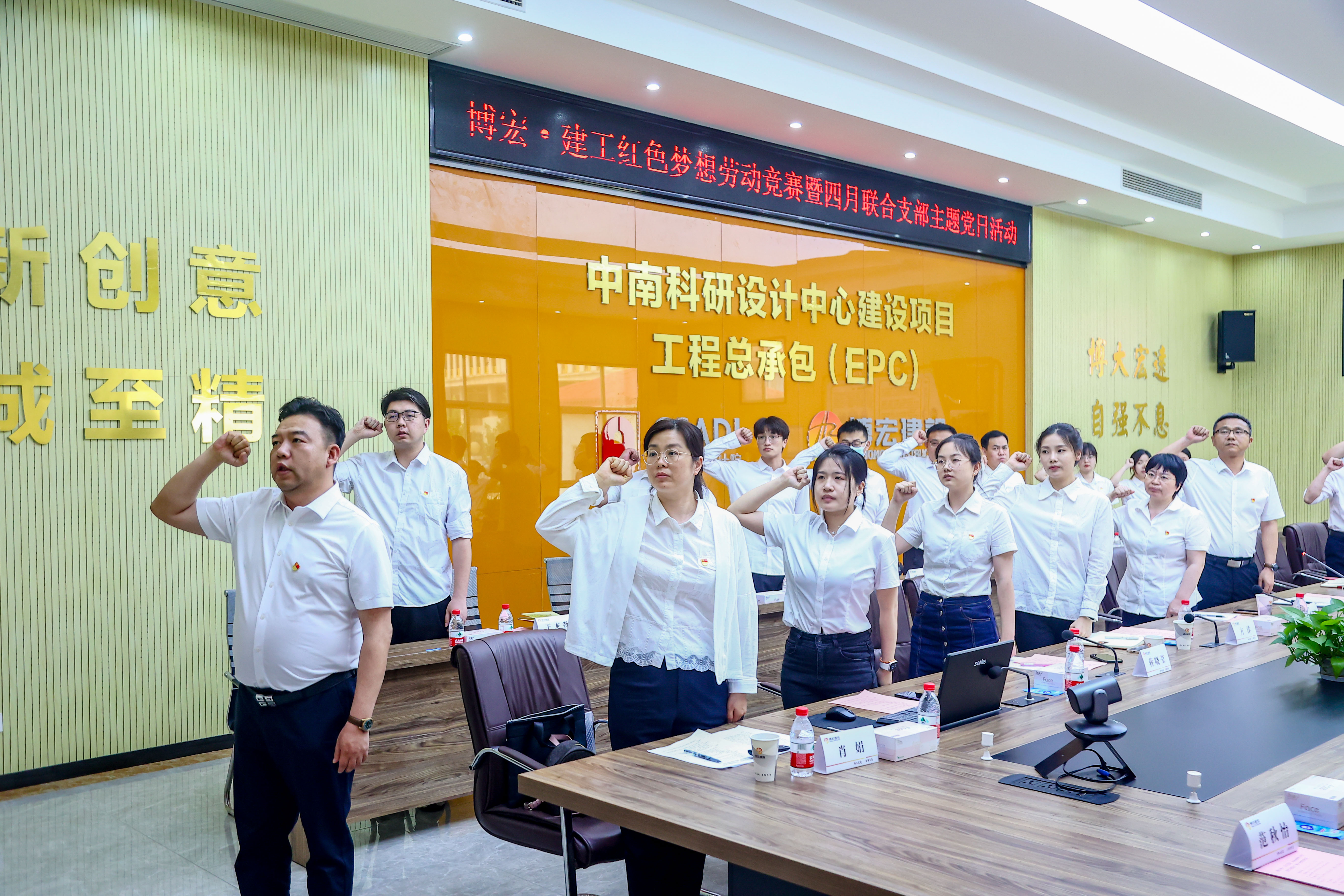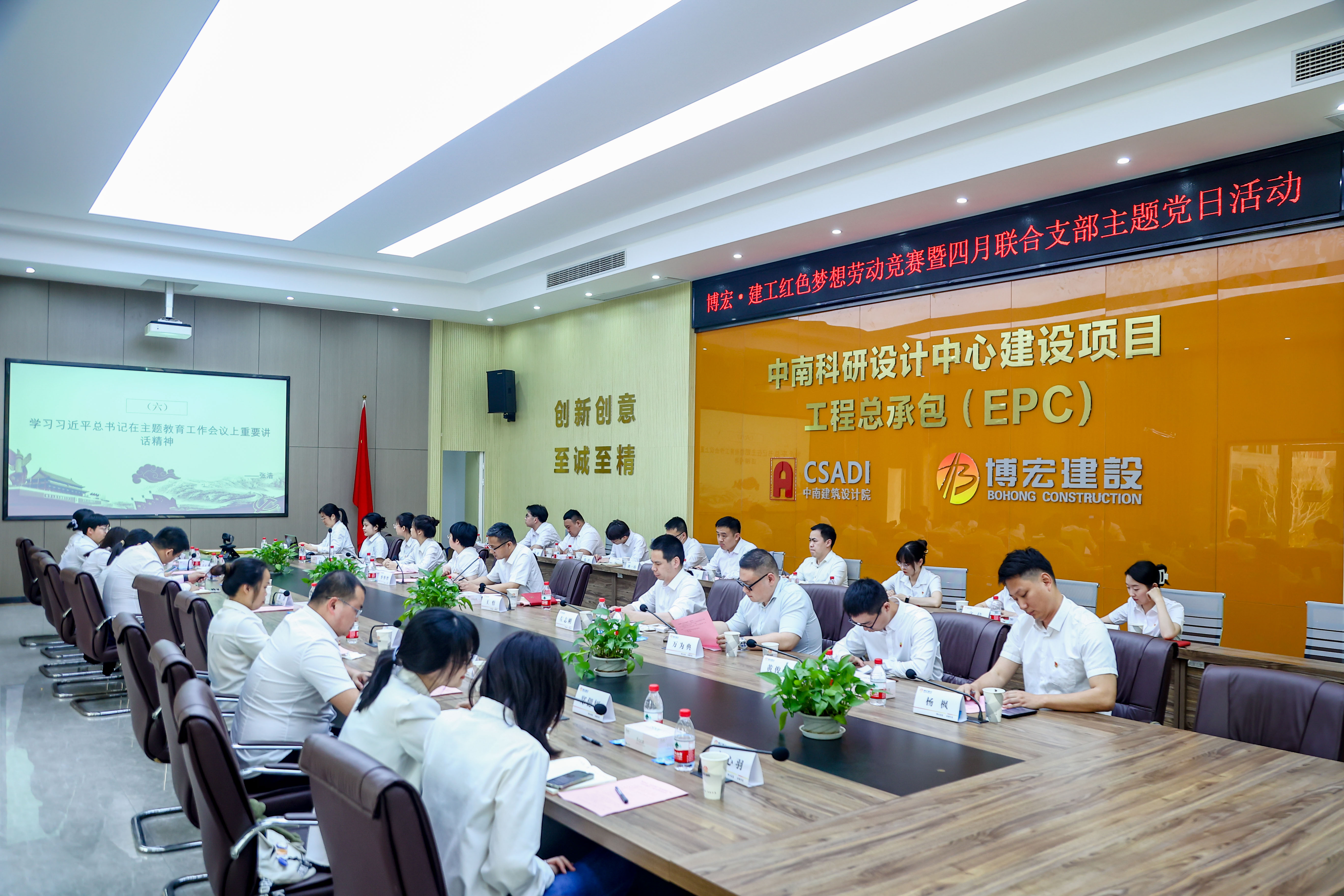 為深入學(xué)習(xí)貫徹黨的二十大和省十二次黨代會(huì)精神,大力弘揚(yáng)勞模精神、工匠精神,4月21日下午14:30,博宏建設(shè)集團(tuán)與長投建工聯(lián)合組織開展“紅色夢想”知識(shí)競賽暨4月支部主題黨日活動(dòng),會(huì)議在博宏建設(shè)集團(tuán)中南科研設(shè)計(jì)中心項(xiàng)目會(huì)議室舉行,會(huì)議由鄂康施工企業(yè)聯(lián)合黨支部書記、長投建工董事長張浩主持。