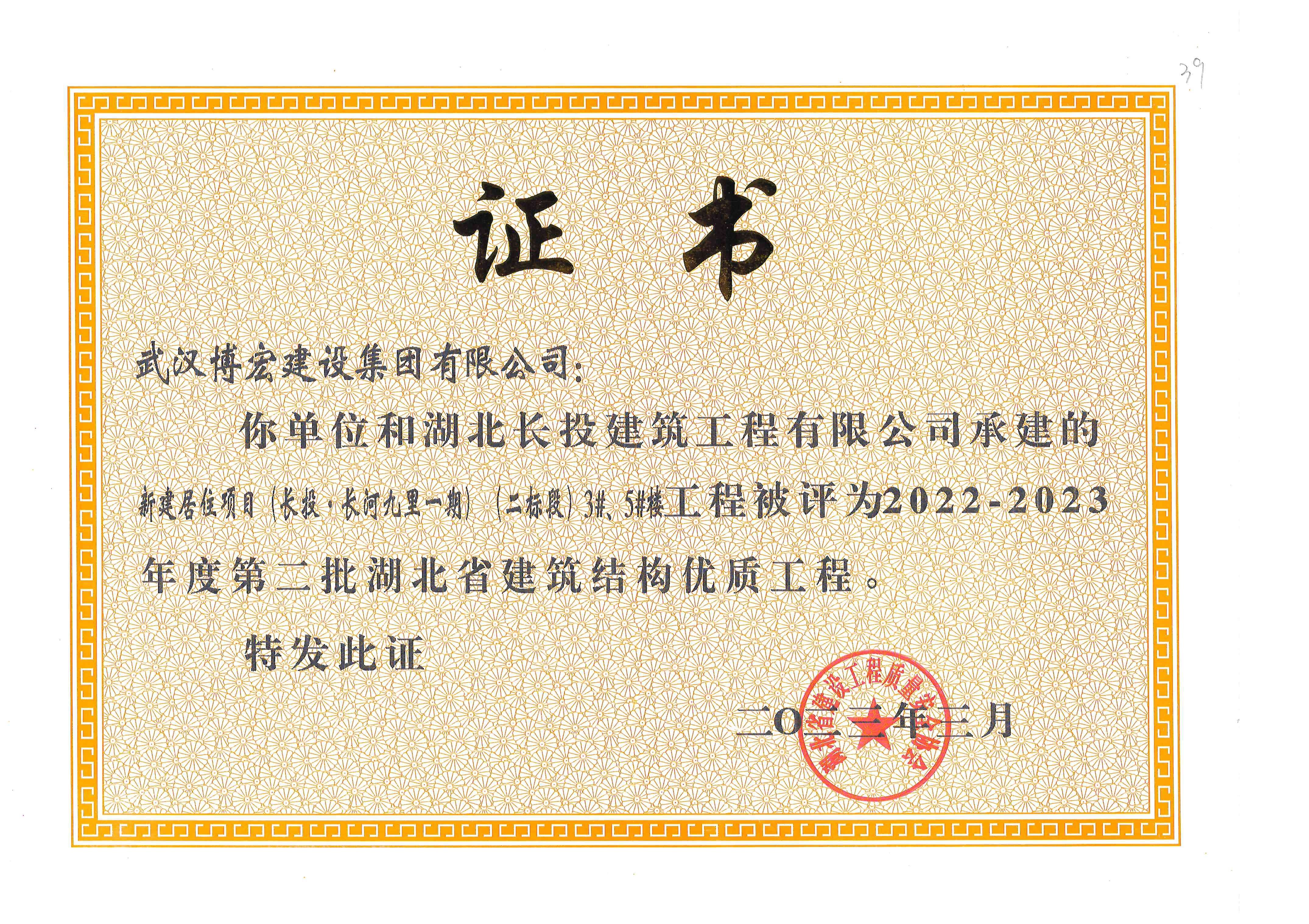 近日,湖北省住建廳2022—2023年度第二批湖北省建筑結(jié)構(gòu)優(yōu)質(zhì)工程項(xiàng)目名單出爐,由博宏建設(shè)集團(tuán)承建的武漢市第五醫(yī)院改擴(kuò)建項(xiàng)目(一期)、新建居住項(xiàng)目(長(zhǎng)投·長(zhǎng)河九里一期)(二標(biāo)段)3#、5#樓榮獲湖北省建筑結(jié)構(gòu)優(yōu)質(zhì)工程獎(jiǎng)。“湖北省建筑結(jié)構(gòu)優(yōu)質(zhì)工程獎(jiǎng)”是湖北省建筑結(jié)構(gòu)工程領(lǐng)域的最高獎(jiǎng)項(xiàng),獲得該獎(jiǎng)項(xiàng)標(biāo)志著該項(xiàng)目在工程結(jié)構(gòu)設(shè)計(jì)、工程施工管理、材料供應(yīng)保證、過(guò)程質(zhì)量控制等方面均達(dá)到省級(jí)領(lǐng)先水平。