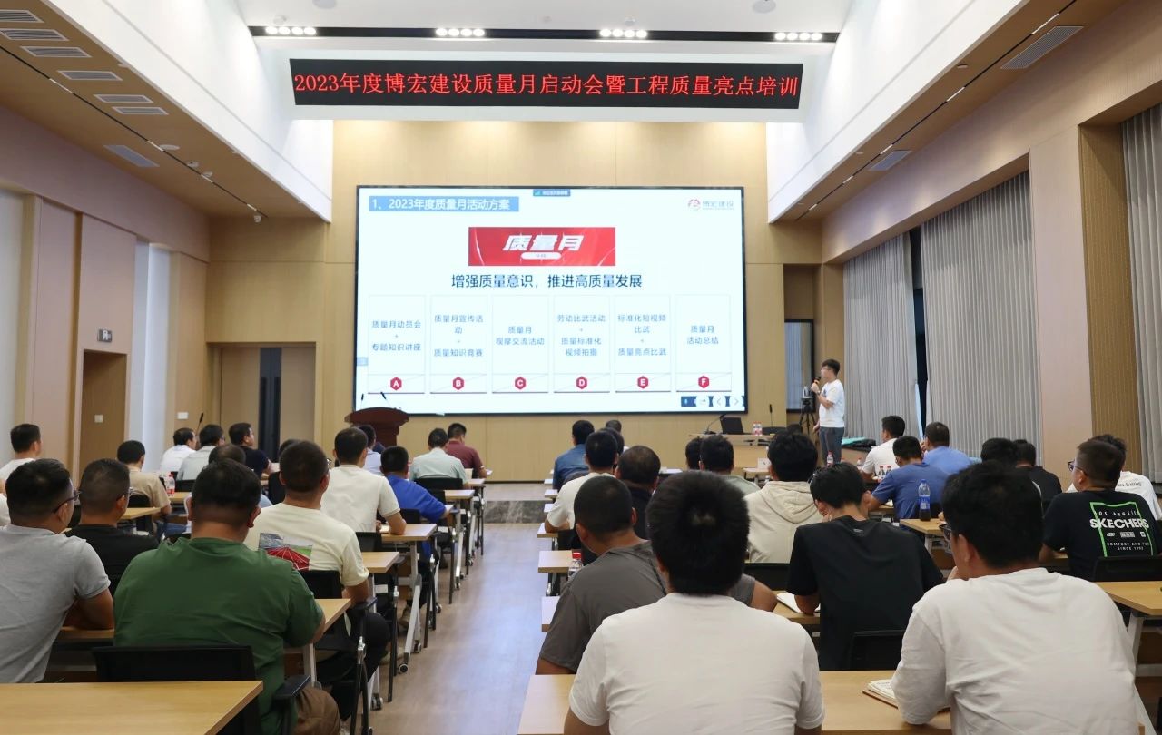 今年9月是第45個全國質(zhì)量月,為全面貫徹黨的二十大精神,落實《質(zhì)量強國建設(shè)綱要》部署,促進(jìn)質(zhì)量強國建設(shè)。9月15日下午,博宏建設(shè)舉辦以“增強質(zhì)量意識,推進(jìn)質(zhì)量發(fā)展”為主題的2023年質(zhì)量月啟動會暨工程質(zhì)量亮點培訓(xùn),黨委書記、董事長、總經(jīng)理鄒勇,總經(jīng)理助理李暉,質(zhì)量管理部部長、市內(nèi)外各項目部負(fù)責(zé)人及質(zhì)量崗位人員共計101人線上線下同步參與活動。