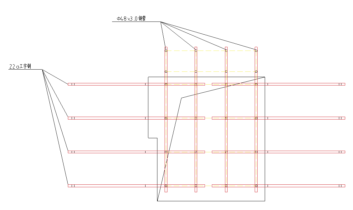 該技術(shù)通過采用兩道16#工字鋼懸挑(一道布置在屋面層,一道布置在屋面層-2層),分別設(shè)置下?lián)渭吧侠姆绞酱钤O(shè)支撐平臺,再利用此平臺為基礎(chǔ)搭設(shè)支撐架和外腳手架,既用于結(jié)構(gòu)施工,同時兼作安全防護(hù),有效降低了操作人員的安全風(fēng)險,對結(jié)構(gòu)安全性有較大保障。