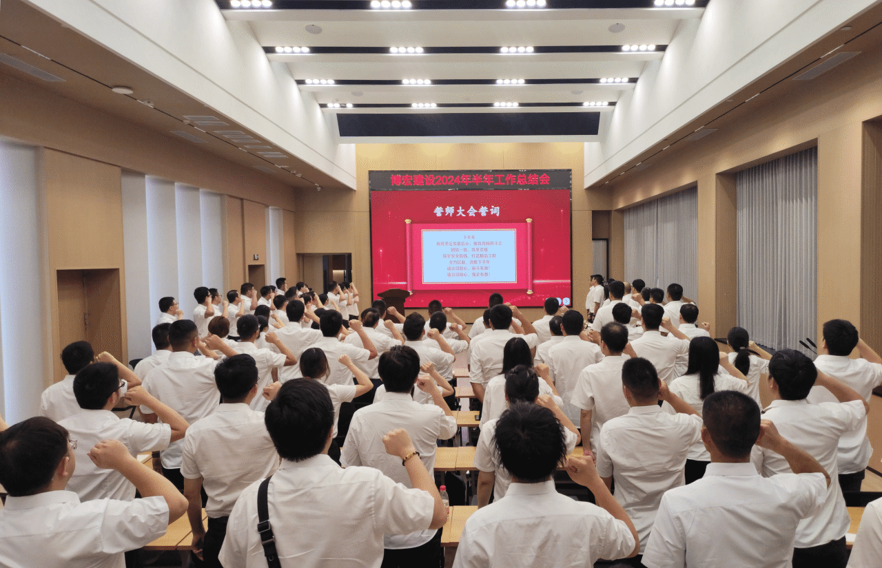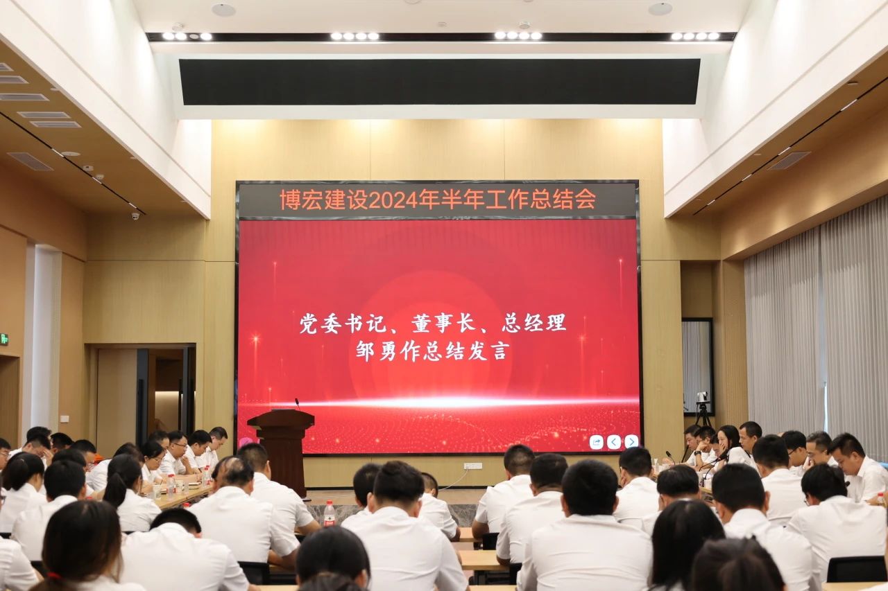 半年總結蓄新力,錨定目標再啟航。7月27日下午,博宏建設集團順利召開2024年半年工作總結會。公司黨委班子、總助、部門及項目部負責人(含副部長)、項目班子成員(生產經理、商務經理、材料員)共計78人參會。會議由黨委副書記郭一清主持。